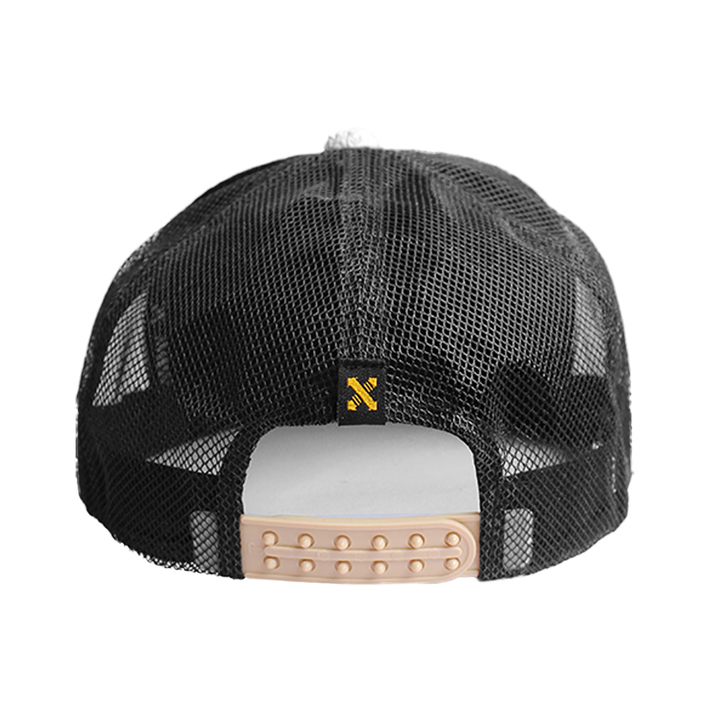 Gorra tipo TRUCKHAT, corte camionero en tela lona tipo terciopelo texturada y malla.